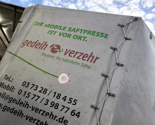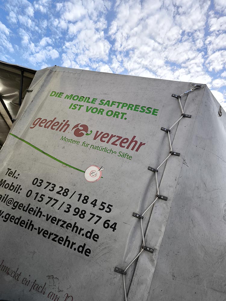 100 Liter Saft sind aus unseren Äpfeln hergestellt worden – und dieser wurden uns gesponsert. Vielen Dank an die Firma „gedeih und verzehr“.